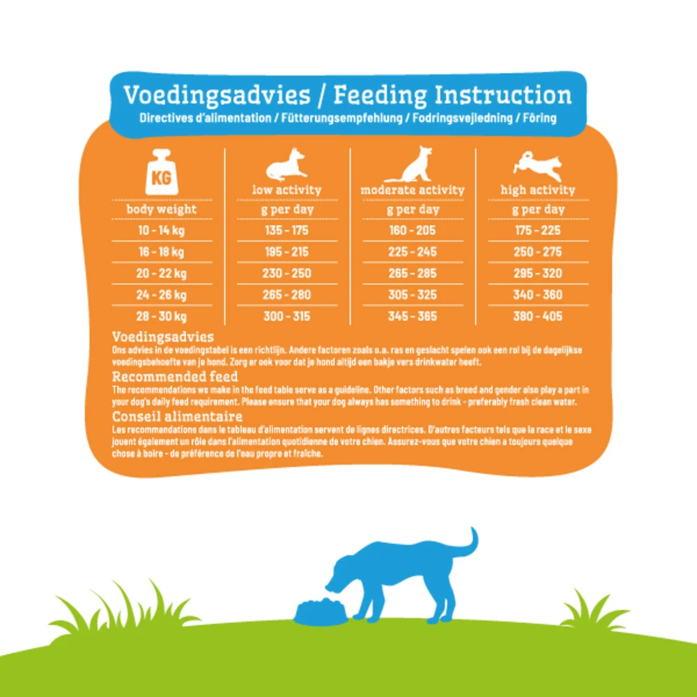 Smølke Hondenvoer Adult Hondenvoer MediumSmølke Adult Medium is een complete Alles-in-één hondenvoeding afgestemd op de behoefte van middelgrote volwassen honden vanaf twaalf maanden met een gewicht tussen de 10kg en 30kg. Het recept van deze lekkere en gezonde hondenbrokjes heeft als basis drie verschillende dierlijke eiwitbronnen, namelijk (verse) kip, duurzaam gevangen vis en lam. De voeding is samengesteld zonder tarwegluten en er zitten geen kunstmatige geur-, kl